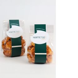 Un producto hecho en Galicia de manera artesanal con ingredientes naturales. Elaboradas a base de harina de trigo, huevo y maridadas con naranja natural; con toque final de sal y azúcar moreno. Sin colorantes, ni conservantes. SIN LÁCTEOS.