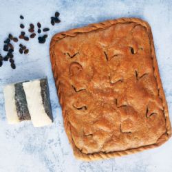 Nuestra receta de empanada gallega artesana tradicional rellena de bacalao con pasas.