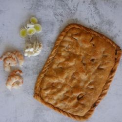 Nuestra receta de empanada gallega artesana tradicional rellena de langostinos con setas.